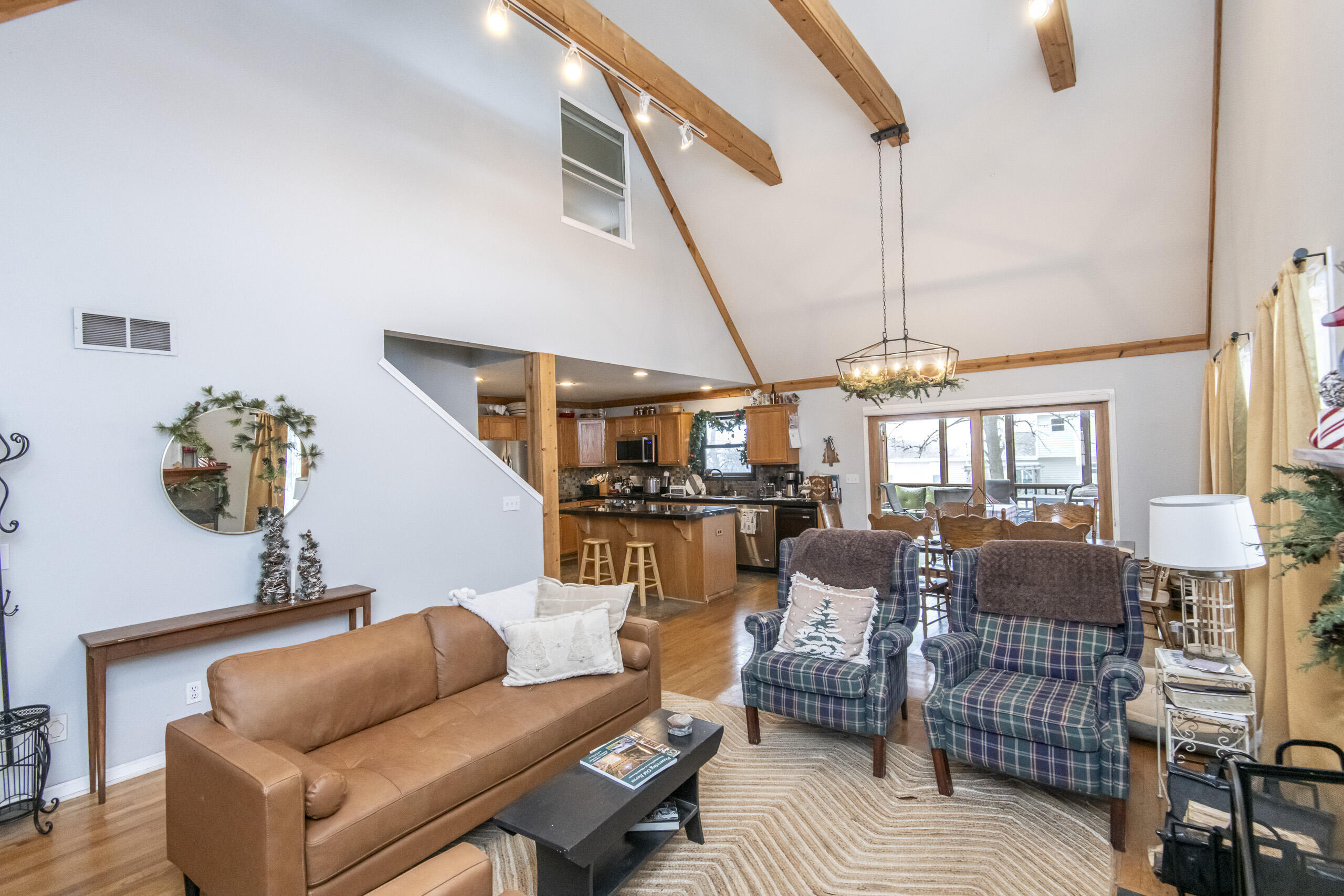 When you enter this inviting living room with a wood-beamed ceiling and cozy fireplace, prepare to be impressed! The main floor boasts a bright, open layout that seamlessly connects the living room, dining area, and kitchen-perfect for entertaining and everyday living. The finished basement features a spacious rec room and bonus room, offering versatility to fit your needs. Step out and enjoy the beautiful screened porch (added in 2021), ideal for relaxing or hosting guests-perfect for summer gatherings. Plus, you'll have access rights to Potter's Lake, where you can enjoy activities like water skiing, fishing, and more. Other updates include new roof (2023), water heater (2022), furnace (2016), & gutter guards (2021). Move-in ready and designed for comfort and enjoyment all year round!